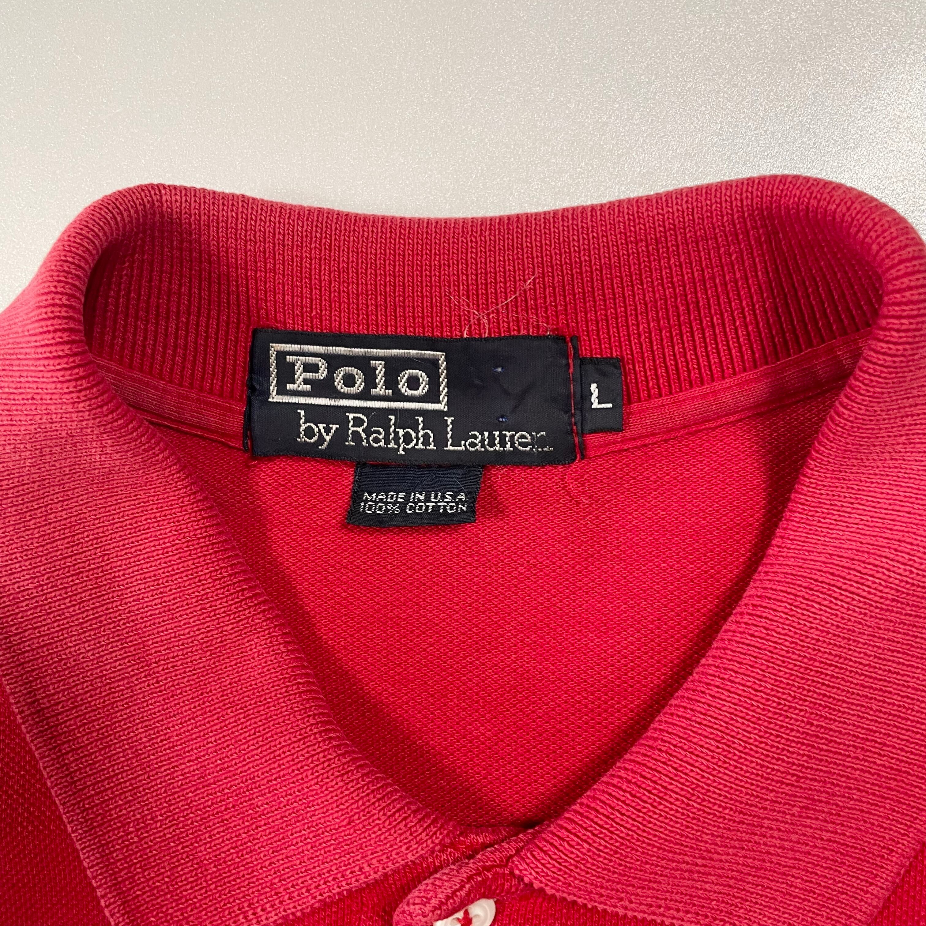 【商品説明】ラルフローレンのポロシャツ。珍しいバイカラーでボーダーパターン。嬉しいUSA製です。着丈が長いので女性がワンピースのように着ても素敵です。