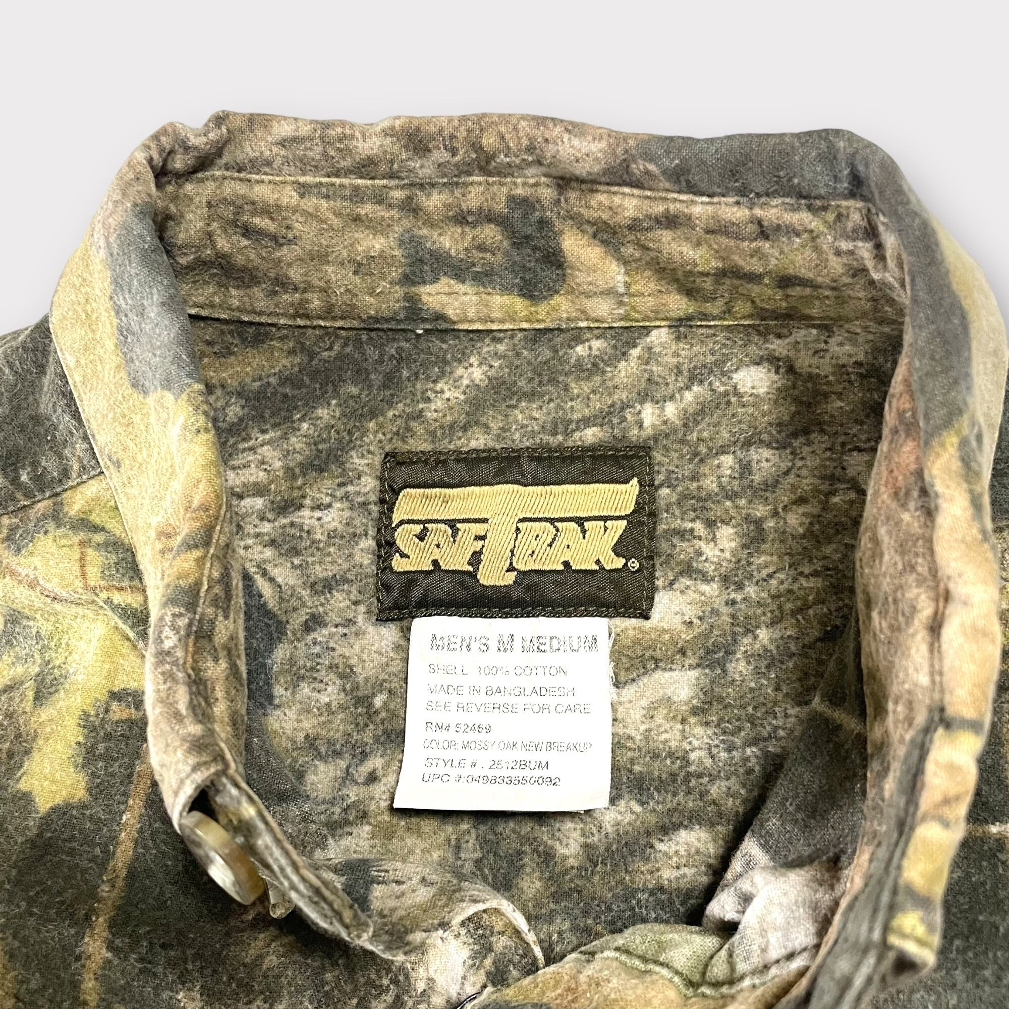 【商品説明】90年代SAFTBAKのリアルツリーカモ半袖シャツ。おそらく長袖を半袖にカスタムしたものになるかと重います。リアルツリーの半袖は意外と見かけないので珍しい1着です。