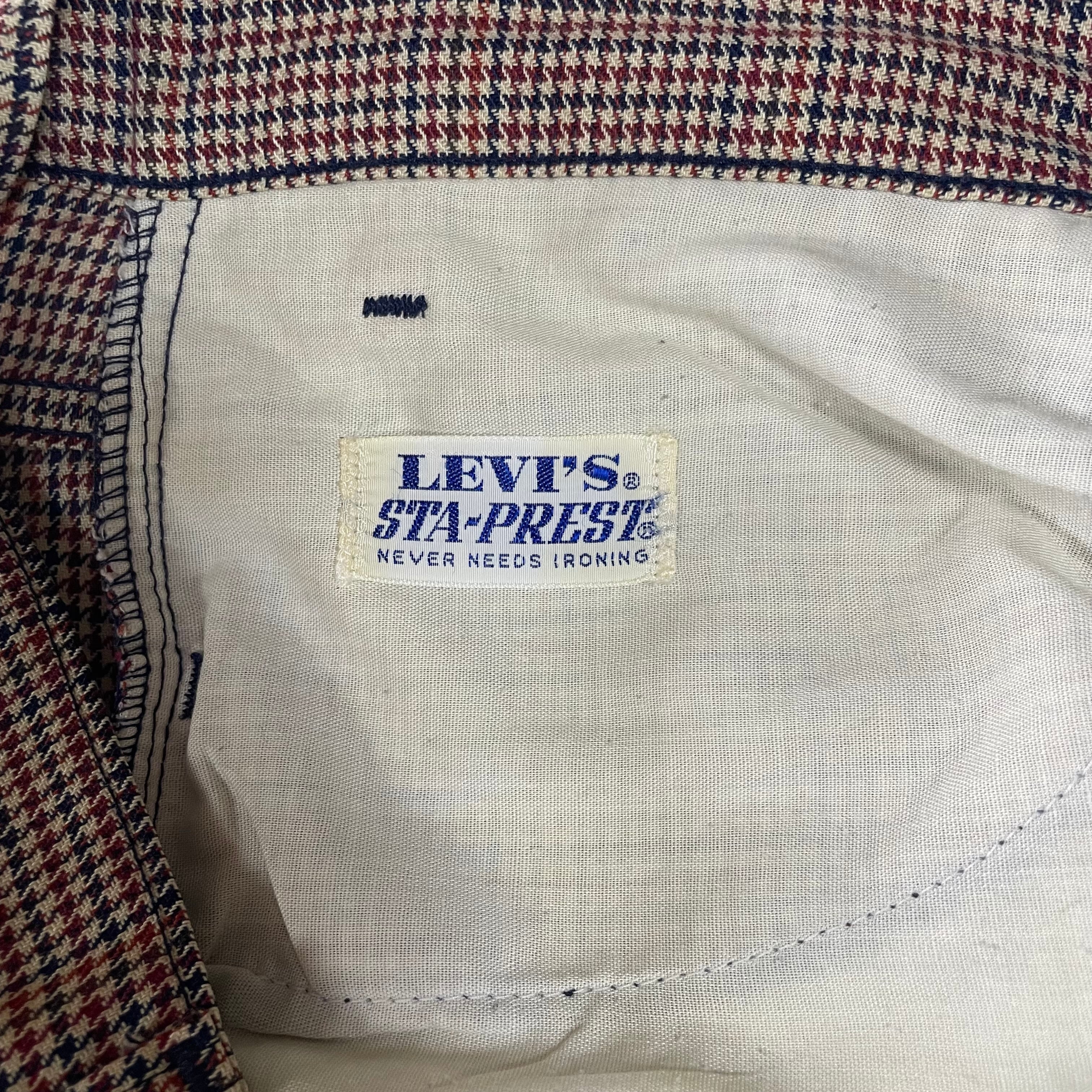 【商品説明】70年代リーバイス のスタプレ517。珍しい千鳥格子の赤×ネイビー×ベージュのチェック柄。黒タブビッグイー、42TALONジッパー。