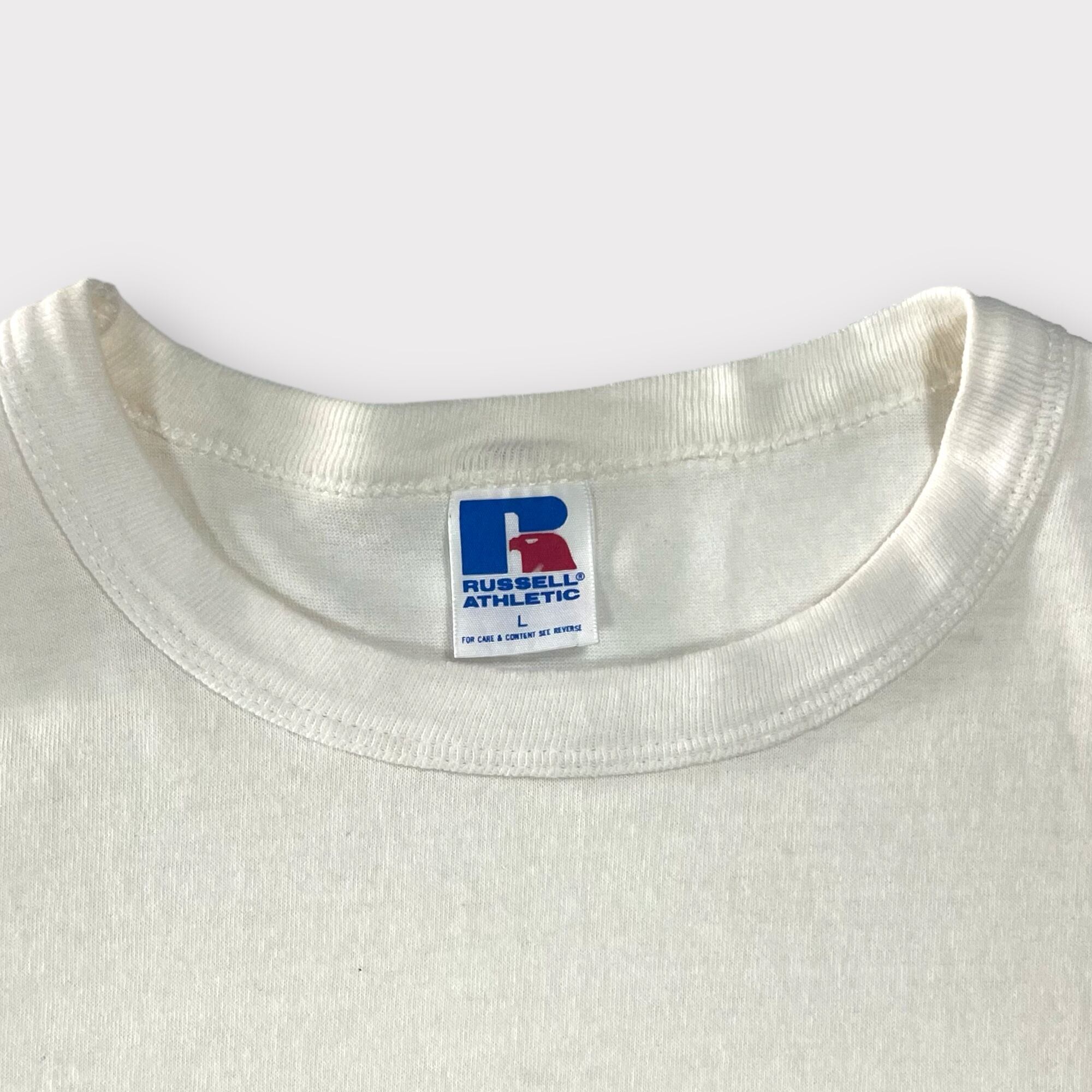 【商品説明】90年代ラッセルアスレティックのプリントTシャツ。NFLのデンバーブロンコスのプリント。アメリカ製で裾袖ともにシングルステッチ。