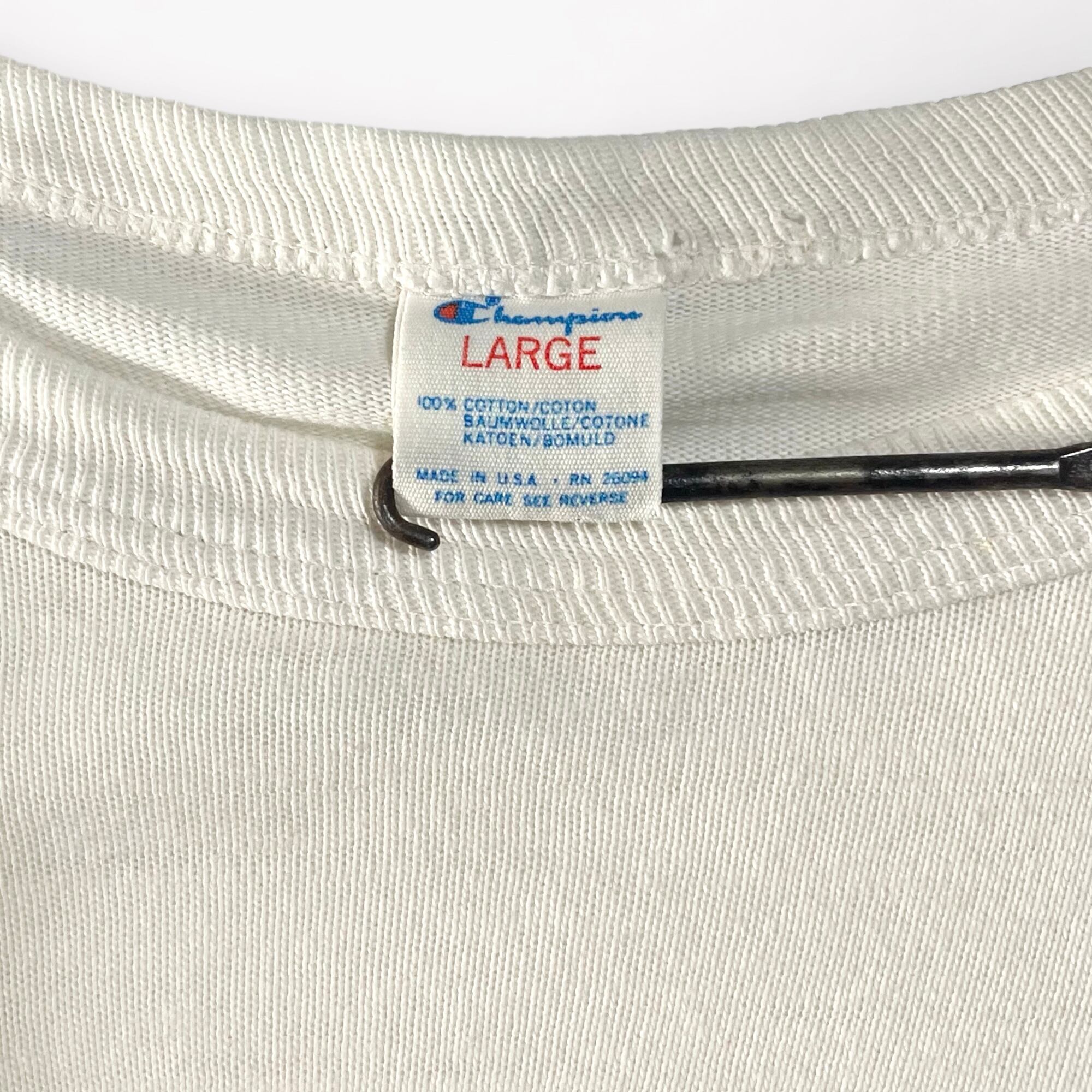 豪華な6段プリント。カレッジものが多い中メッセージ系のプリントは珍しいです。袖はシングルステッチ。