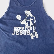 【商品説明】DELTAのプリントタンクトップ。アメリカのトレーニングジムのものでキリストが筋トレしているユニークなプリント。