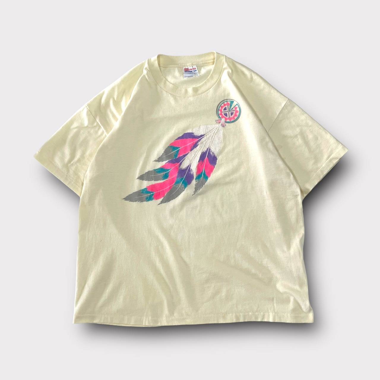 【商品説明】90年代HanesのプリントTシャツ。フェザーのグッドプリント。裾袖ともにシングルステッチ。