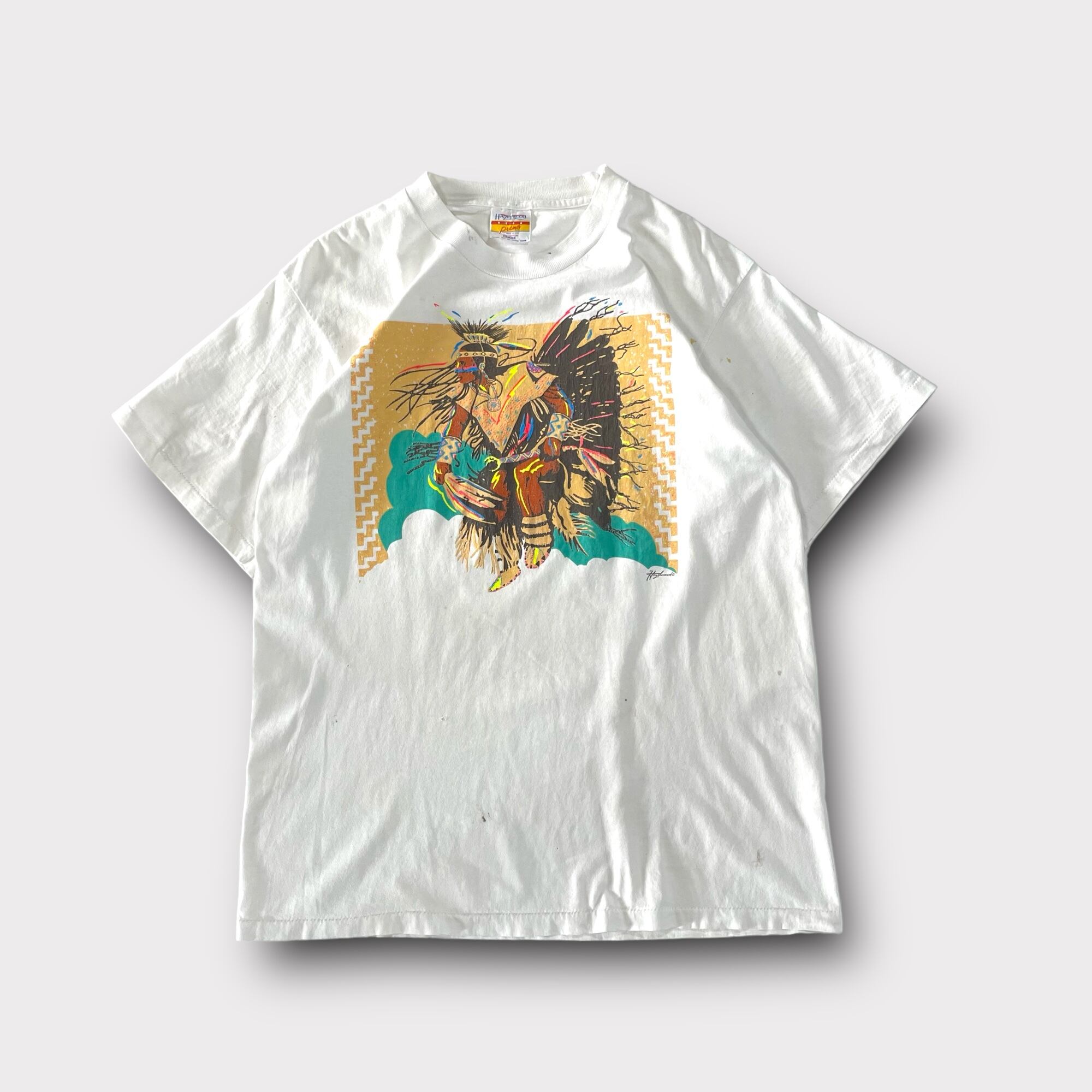 90's HAZELWOOD indian print tee made in USA シングルステッチ