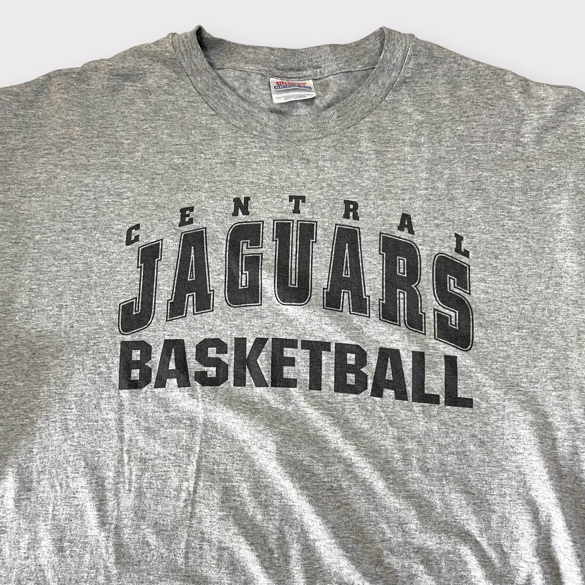 【商品説明】HanesのプリントTシャツ。CENTRAL JAGUARSというバスケットボールチームのTシャツ。おそらくどこかの大学になるかと思うのですが詳細は不明です。裾袖ともにダブルステッチ。