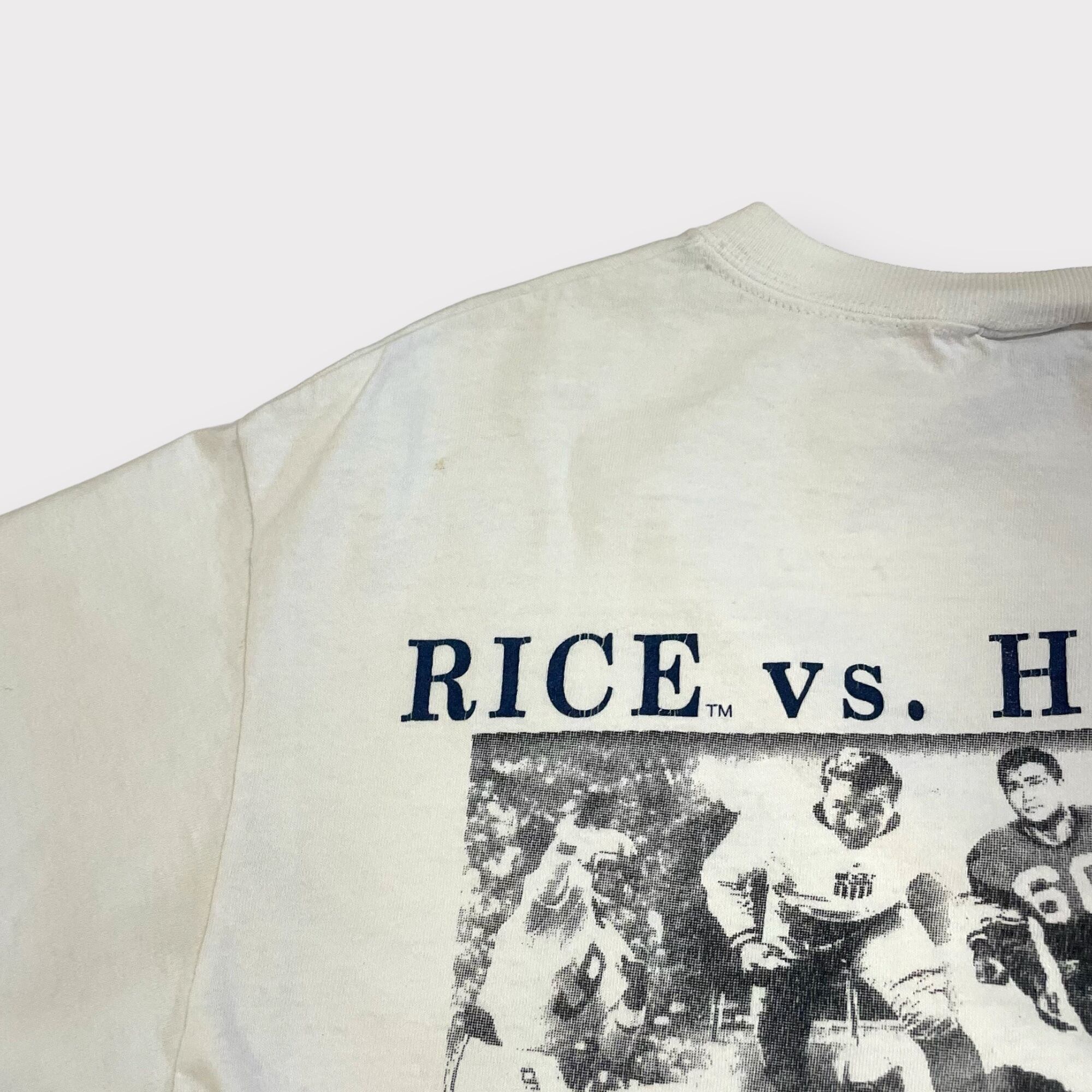 【商品説明】90年代JANSPORTボディのプリントTシャツ。ライス大学とヒューストン大学の卒業生で行われたアメフトの試合の記念Tシャツ。