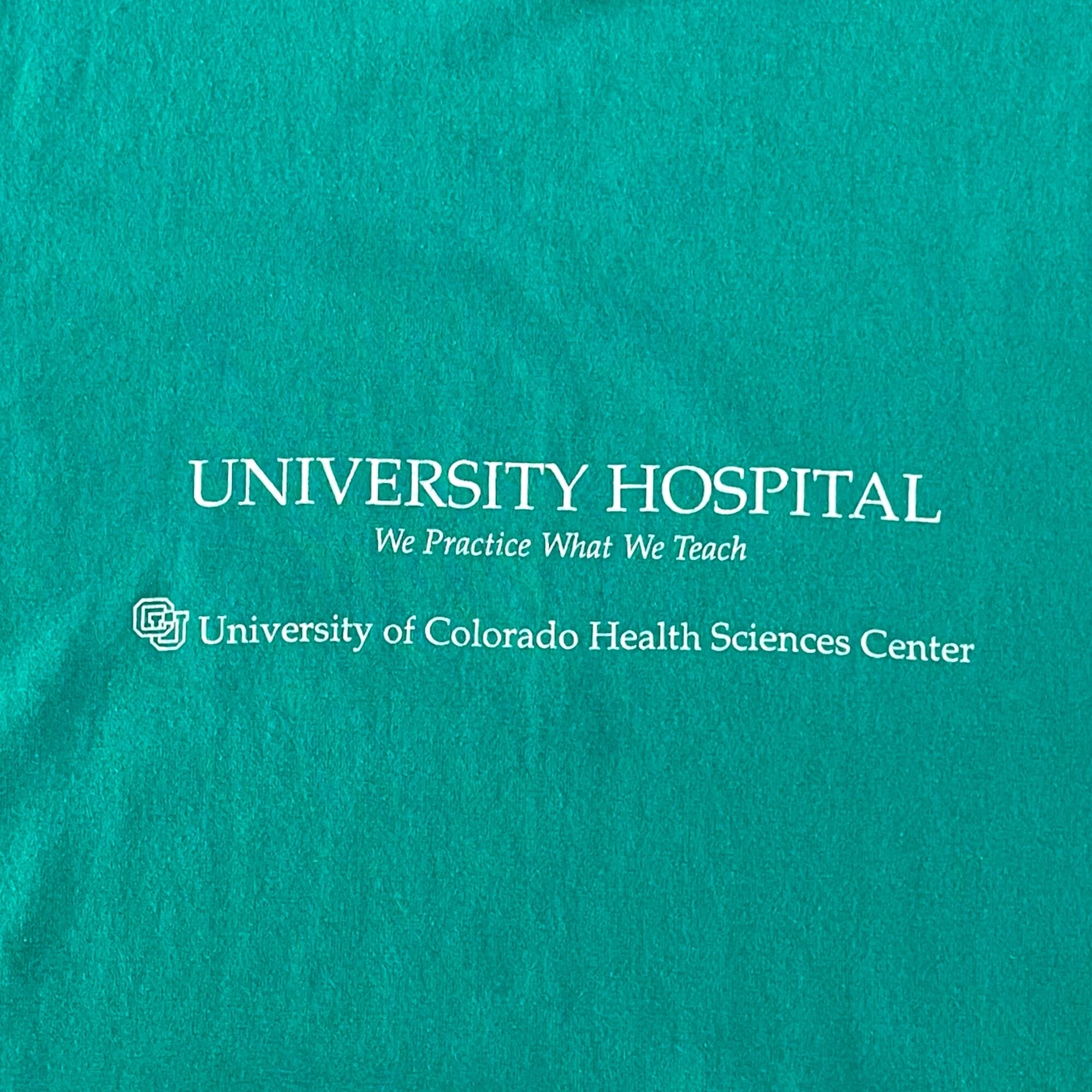 【商品説明】80年代HanesボディのプリントTシャツ。コロラド大学健康科学センターのプリント。綺麗な色味にシンプルなプリント。裾袖ともにシングルステッチ。
