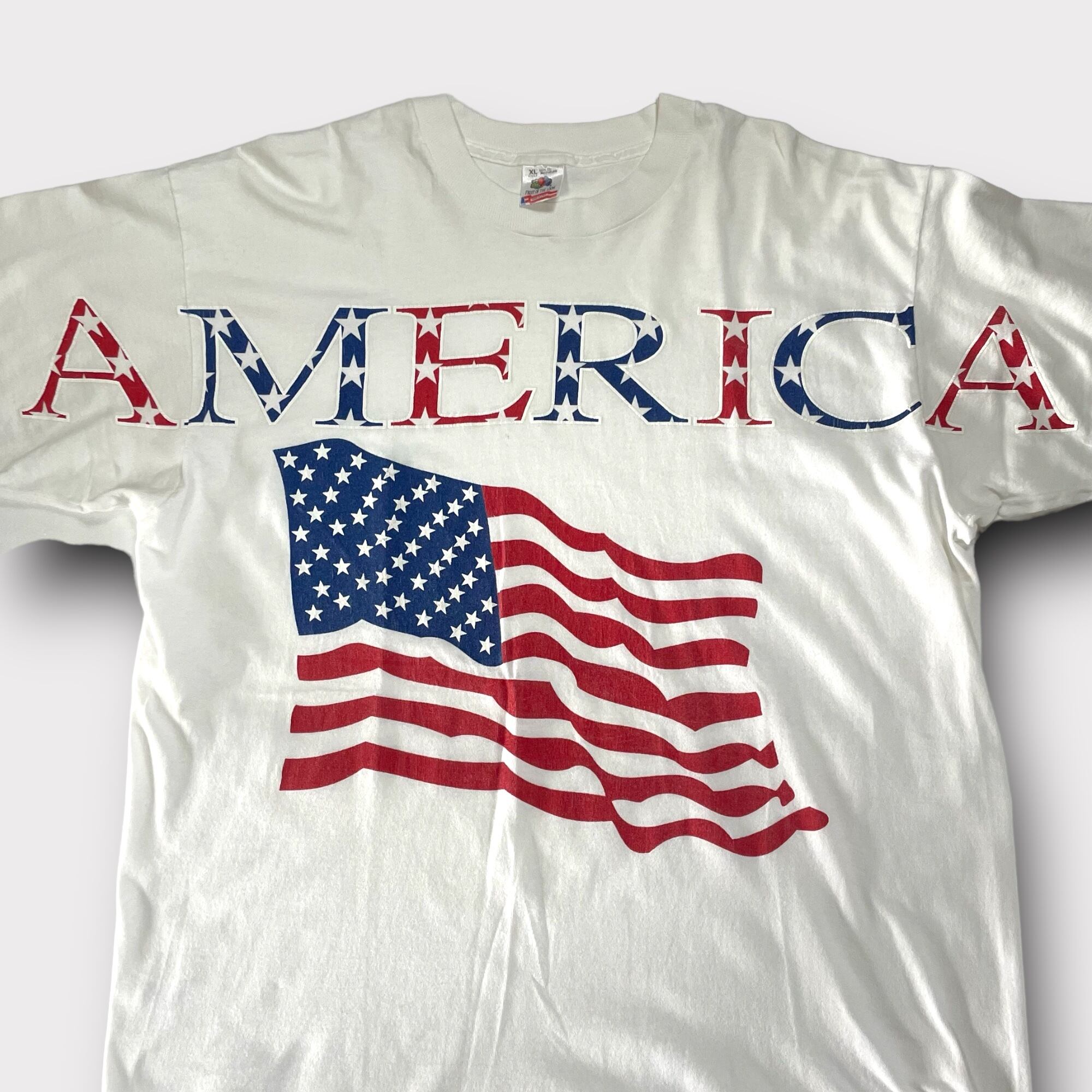 90's FRUIT OF THE LOOM AMERICA print T made in USA USA製 シングルステッチ