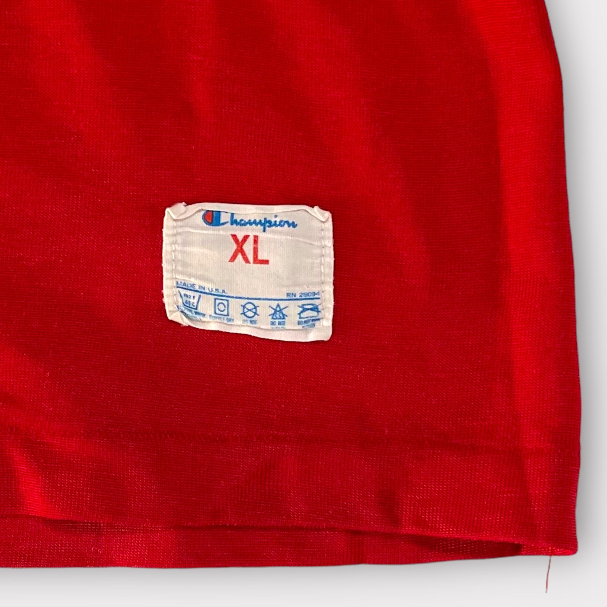 人気のモチーフであるWisconsin大学のバッキーくんがフロントにプリントされたWisconsinカラーのフットボールTです。