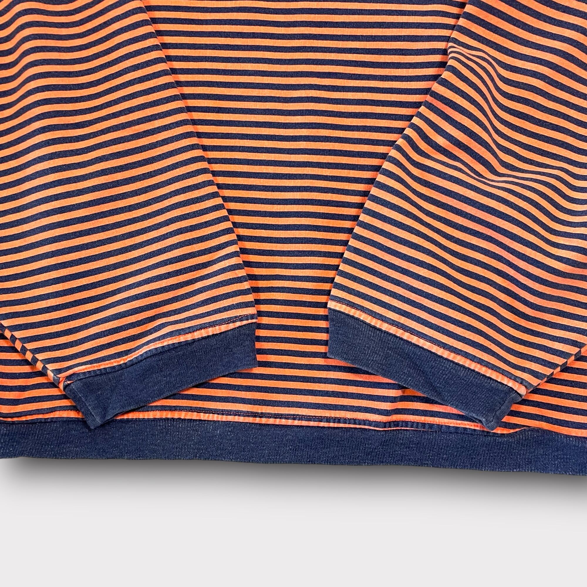【商品説明】90年代ごろのSPOT SPORTのボーダースウェット。短丈で身幅の広い変系スウェット。オレンジネイビーのボーダーで両サイドにはポケット付き。